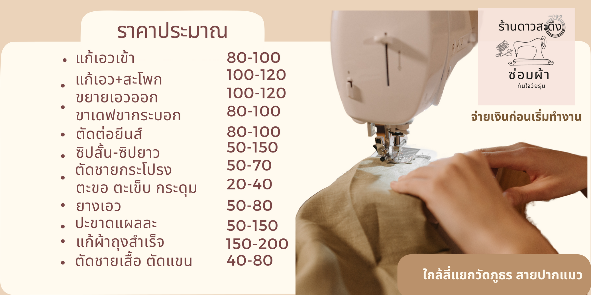 ทางร้านให้บริการตั้งแต่ซ่อมแซมเสื้อผ้าเล็กๆน้อยๆ